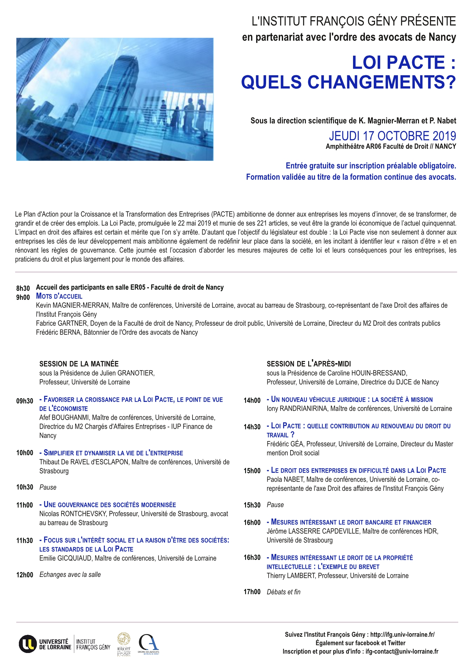 - Kevin MAGNIER-MERRAN, Maître de conférences à l’Université de Lorraine et représentant de l’axe « Droit des affaires » de l’Institut François Gény