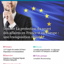 Cette parution, dans le Journal des sociétés, d’un dossier intitulé « La protection du secret des affaires en France et en Europe : une transposition réussie ? » fait suite au colloque du même nom organisé le 23 novembre 2018 par l’Institut François Gény sous la direction scientifique de Sylvie Pierre-Maurice.
