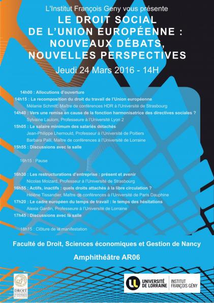 Faculté de Droit, Sciences économiques et Gestion – Salle des Assemblées – 13 place Carnot – 54000 Nancy