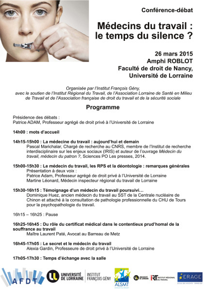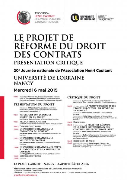 Faculté de Droit, Sciences Economiques et Gestion, Amphi ROBLOT, 13 place Carnot – 54000 Nancy