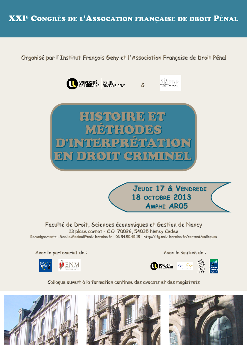 Amphithéâtre AR06 – Faculté de Droit, Sciences Economiques et Gestion – 13, place Carnot – 54000 Nancy