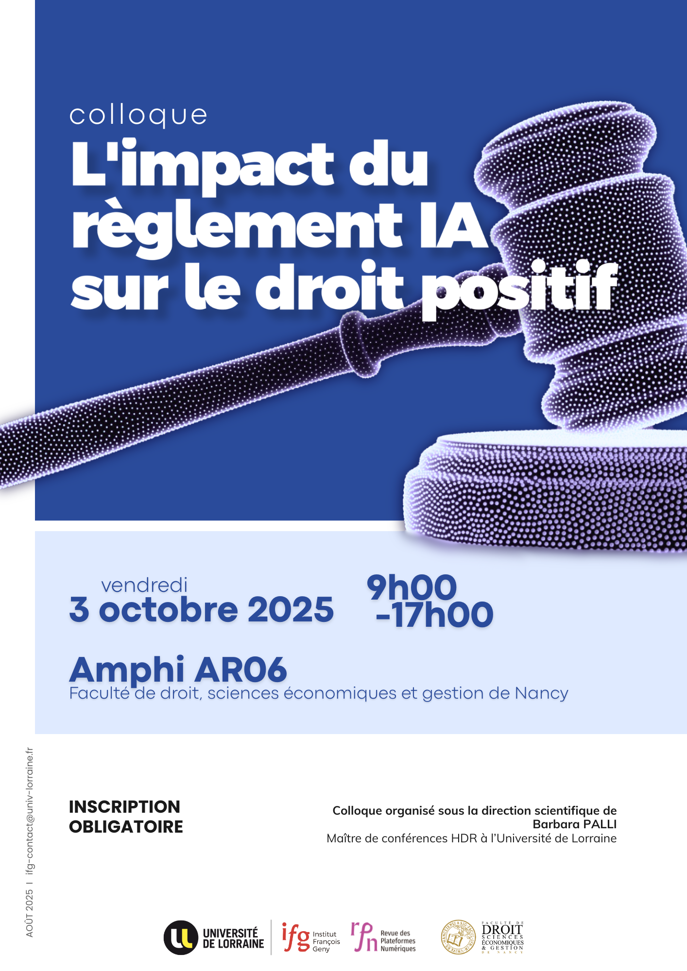 Toutes ces questions, et bien d’autres (telle que la reconnaissance faciale, ou l’impact du RIA sur les droits fondamentaux des travailleurs) seront abordées aussi bien lors de la journée du 3 octobre 2025 que dans le numéro thématique de la Revue des Plateformes Numériques (RPN, https://revue-rpn.fr) qui sortira en ligne au printemps 2026.