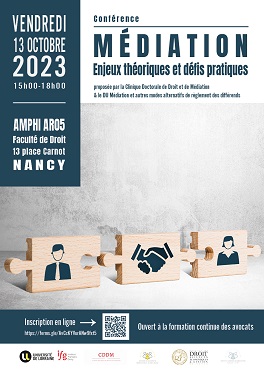 Conférence proposée par la Clinique Doctorale de Droit et de Médiation (CDDM) et le DU Médiation et autres modes de règlements alternatifs des différends (MARD)